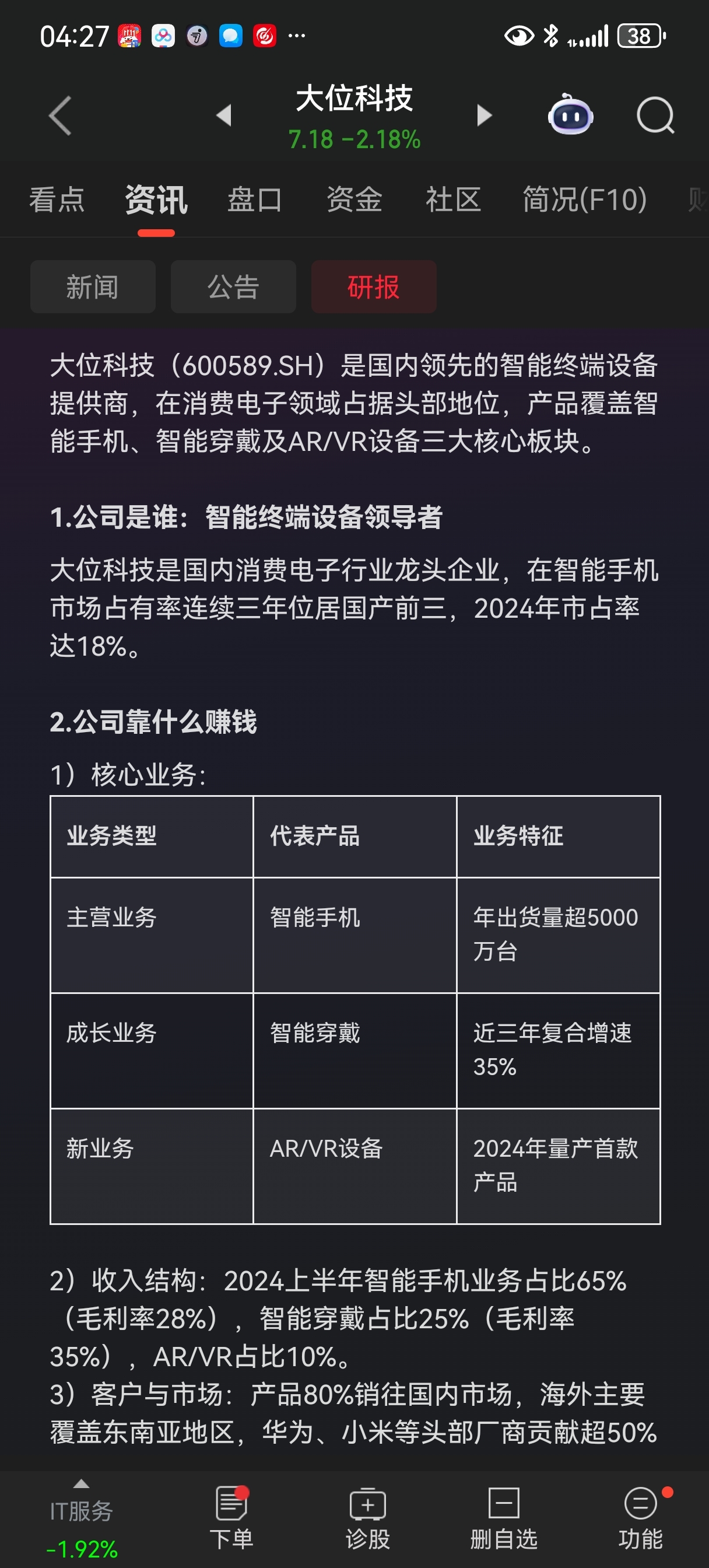 $大位科技(SH600589)$ 电子消费板块龙头企业大家怎么看,而且是主业务之一,和华为,小米都有业务往来