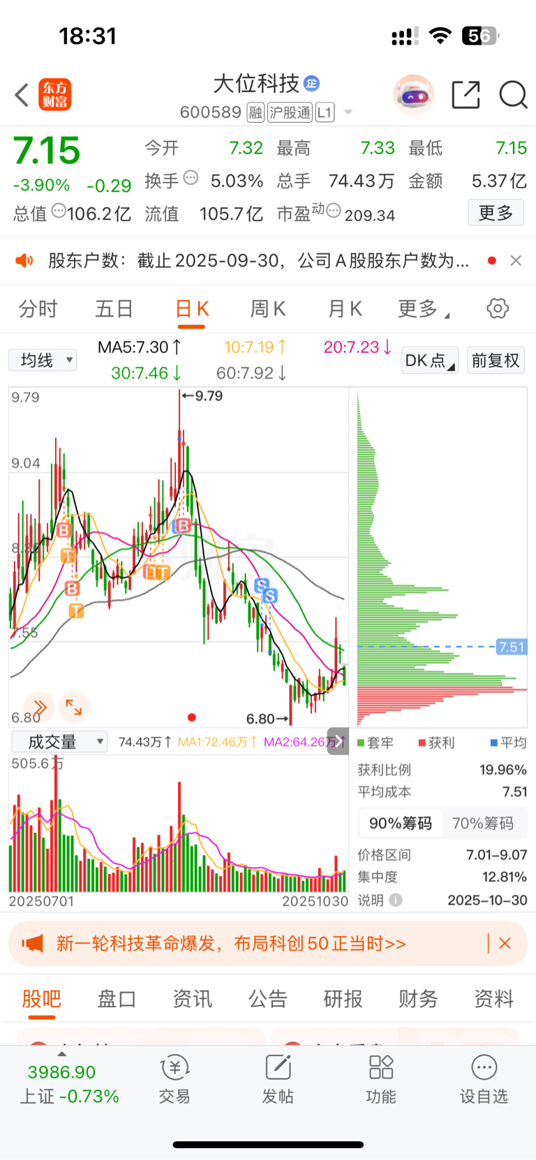 $大位科技(SH600589)$ 盈利百分之三十没走没走,亏了百分之三十割了,痛
