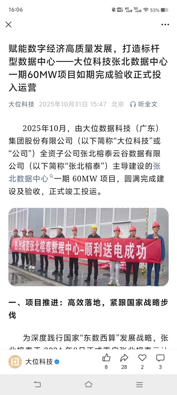 $大位科技(SH600589)$
