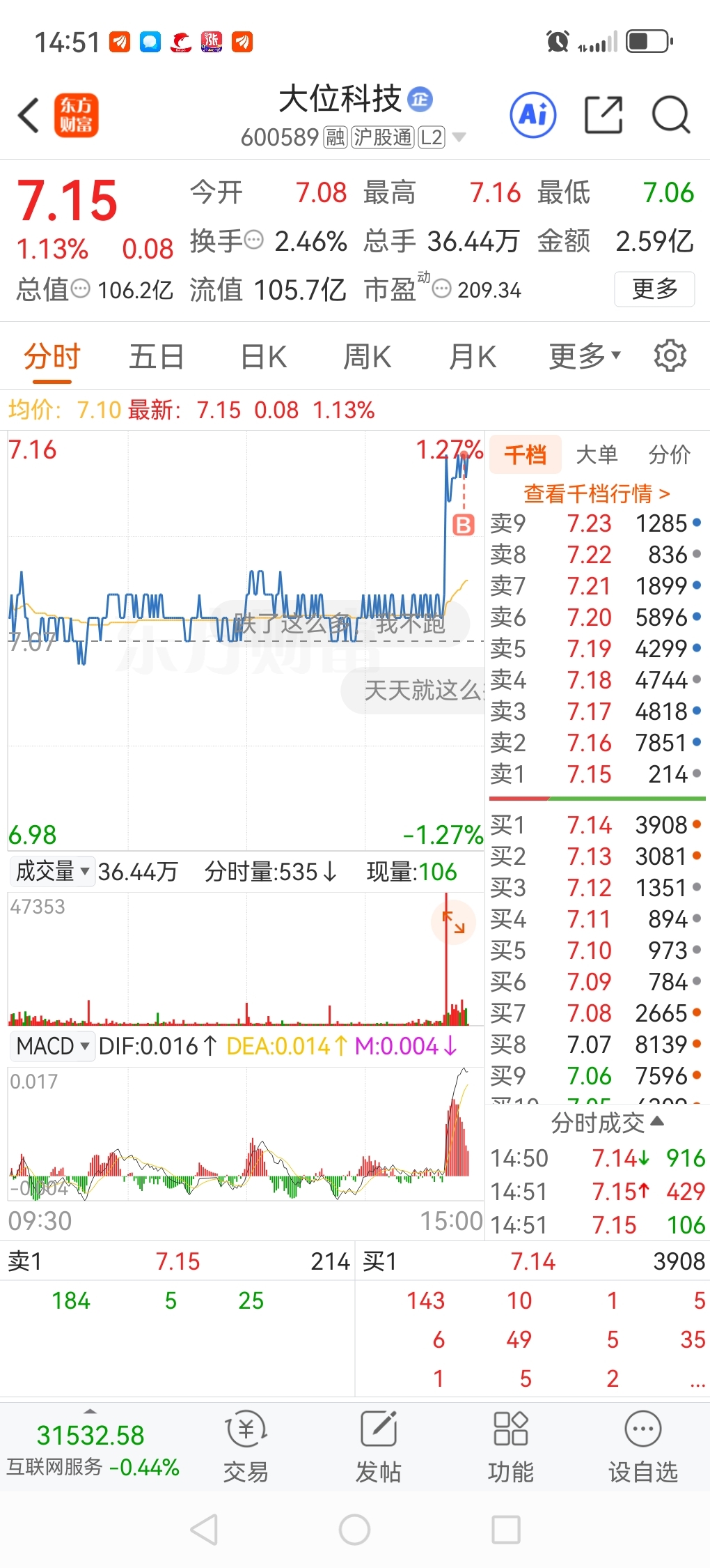 $大位科技(SH600589)$ 3万手是发令枪还是陷阱,管他呢,补点仓。