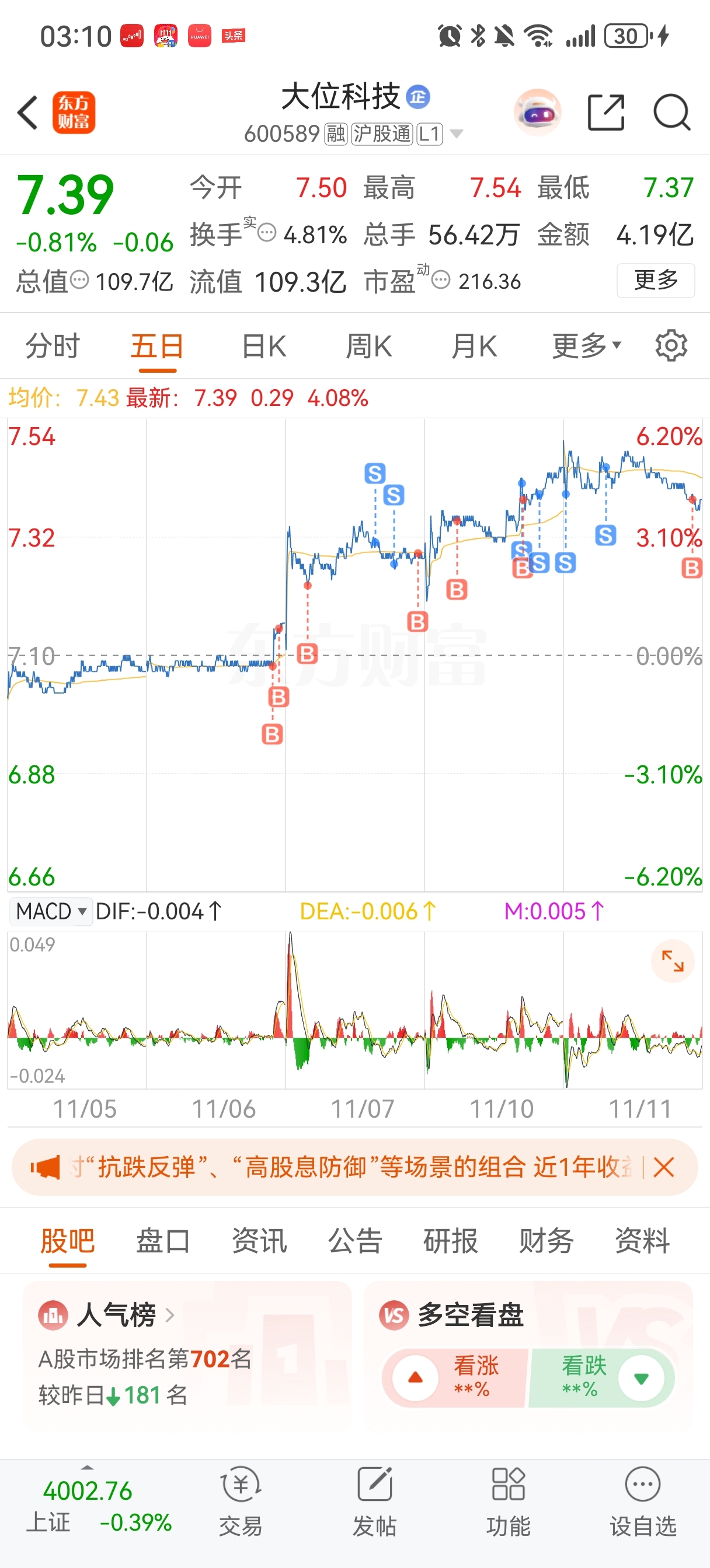 $大位科技(SH600589)$ T做的不好,能怎么办呢