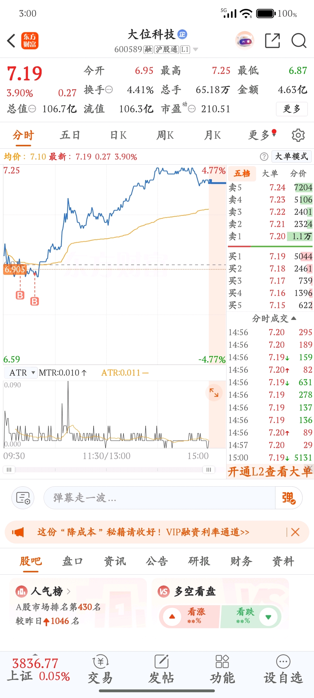 $大位科技(SH600589)$ 大面科技,大面拉基,大面科技明天吃大面