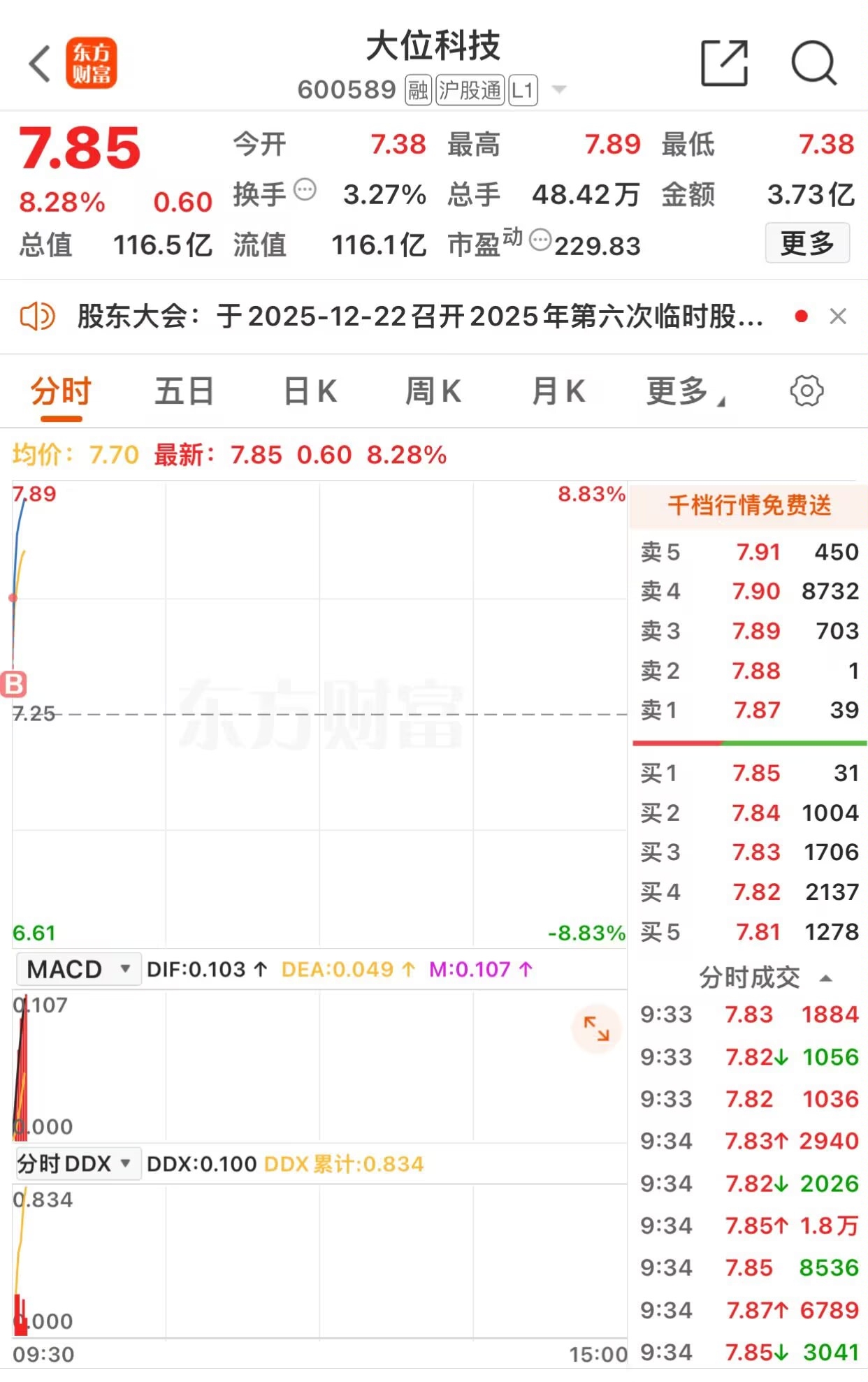 $大位科技(SH600589)$ 上车#炒股日记# #强势机会#