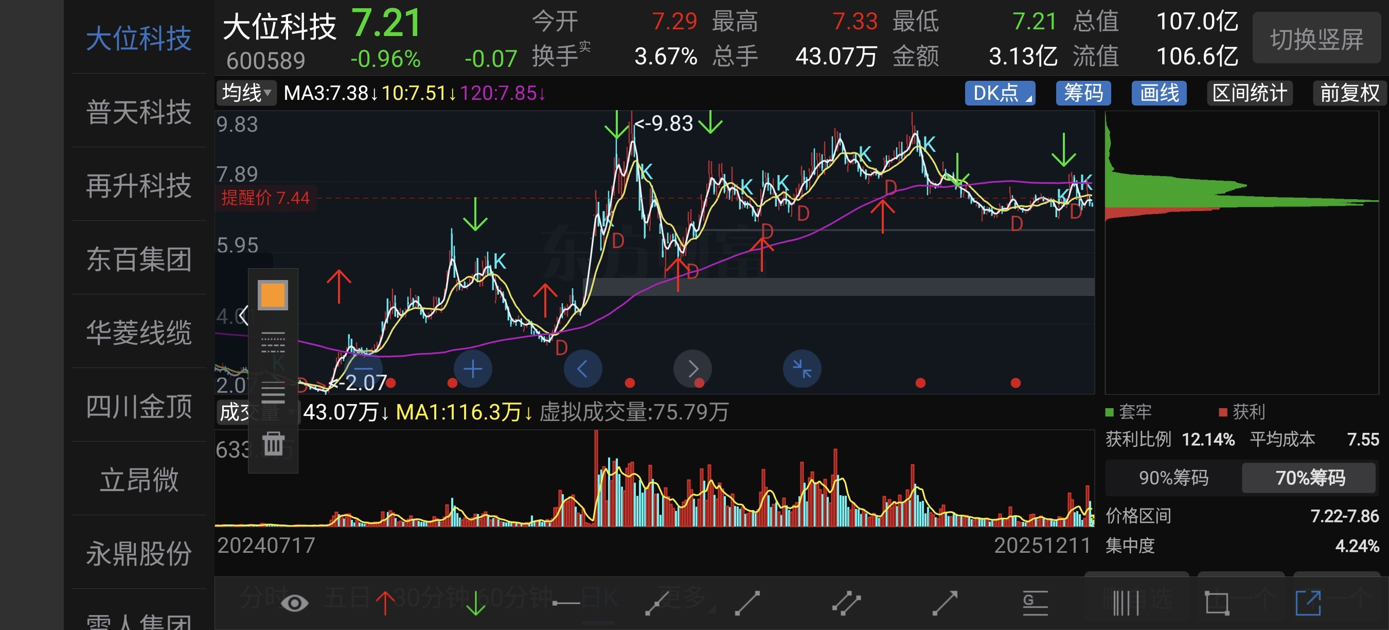$大位科技(SH600589)$ 牛走了,破了120日线,上升途中追高,都可以解套,下跌途中,买点再好,都容易被套!!!