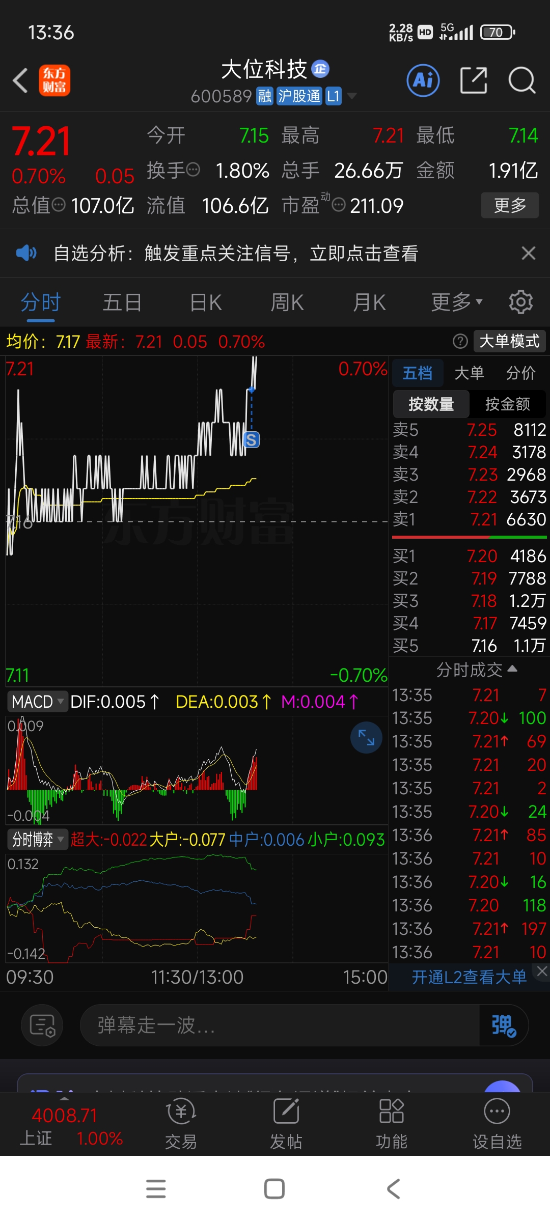 $大位科技(SH600589)$ 已清仓,你可以涨了……
