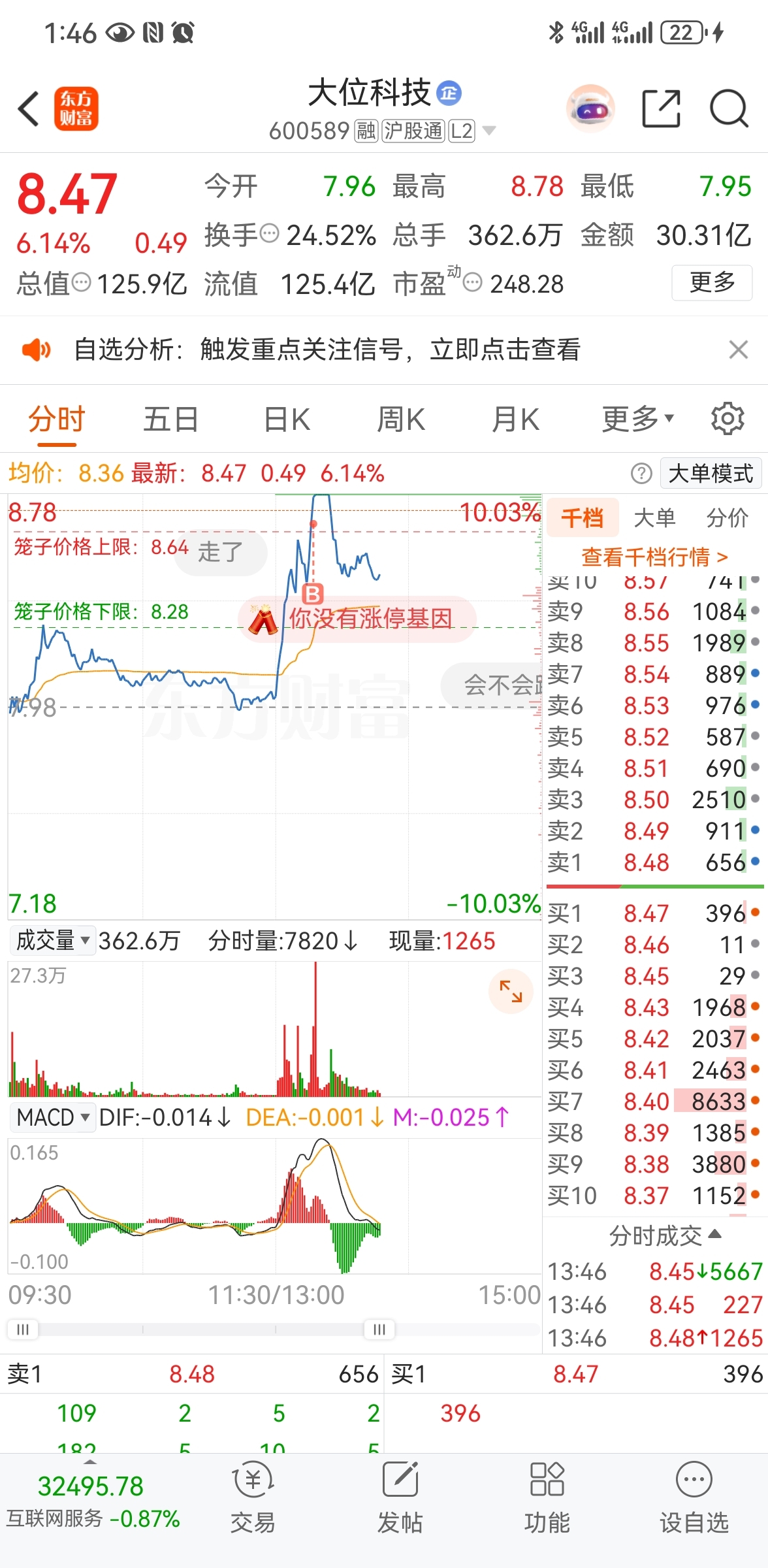 $大位科技(SH600589)$ 对不起,一手买崩