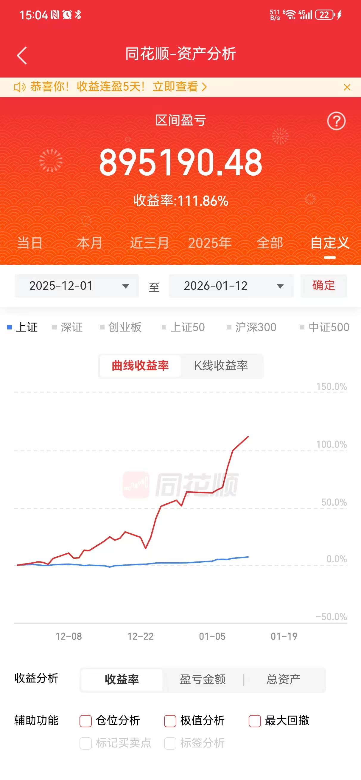 从12月1日到现在翻倍了,纪念一下不知道是我悟道了?还是走了运?或者说是行情