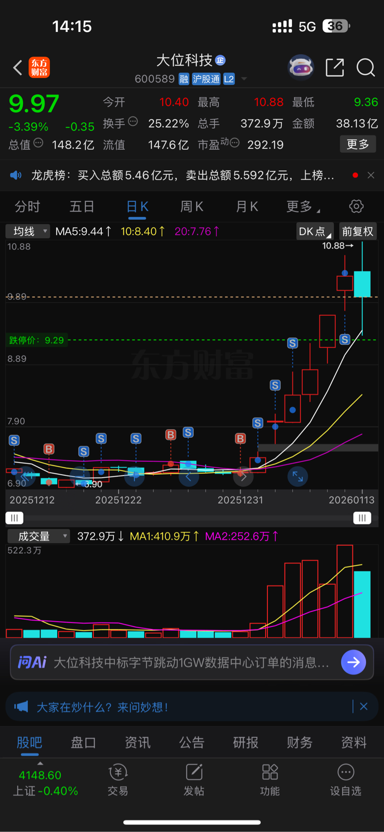 $大位科技(SH600589)$ 昨天逃顶了