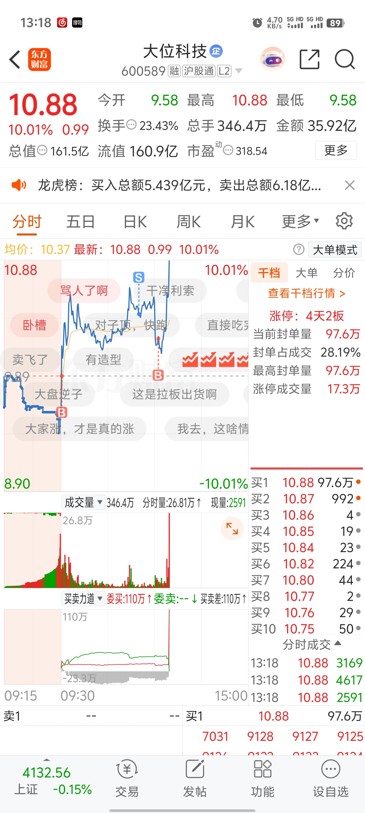 $大位科技(SH600589)$ 你当大盘逆子的样子好帅