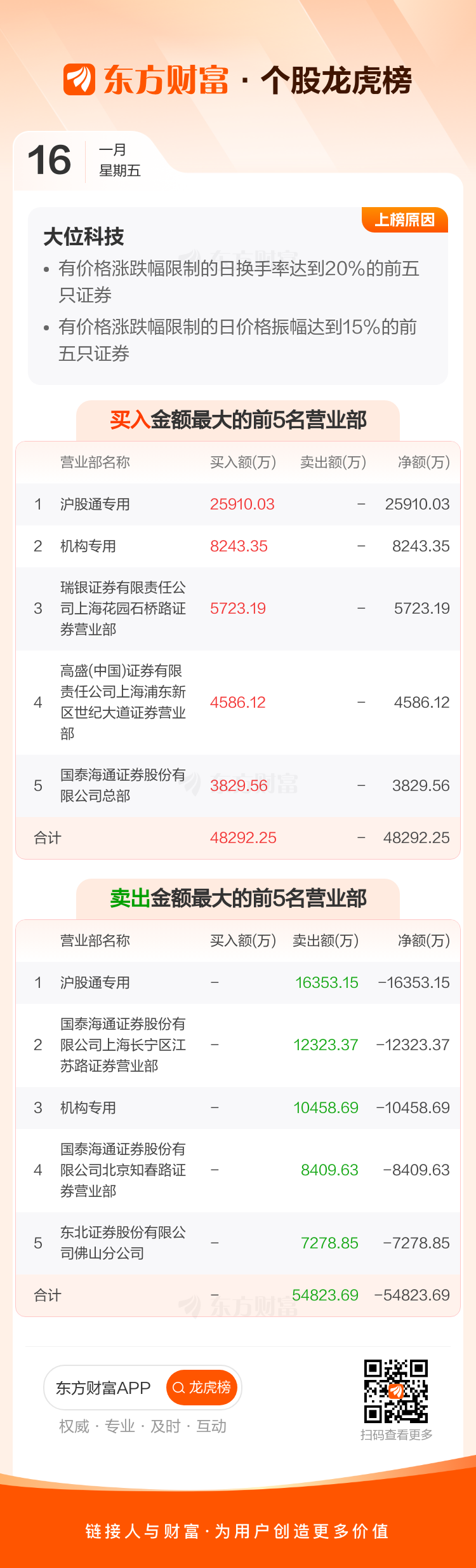 大位科技(600589)龙虎榜数据(01-16)