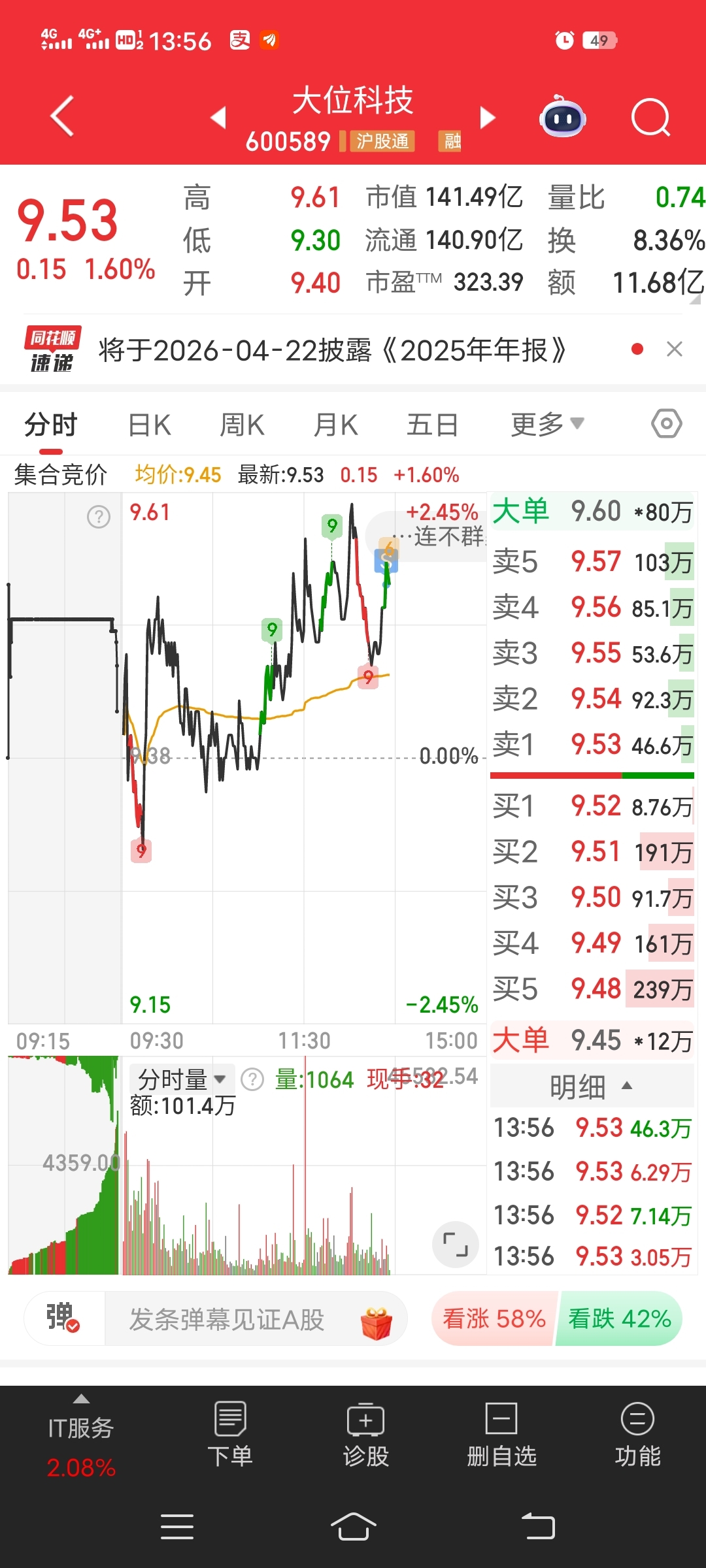 $大位科技(SH600589)$ 今天表现太一般了,清了腾仓位