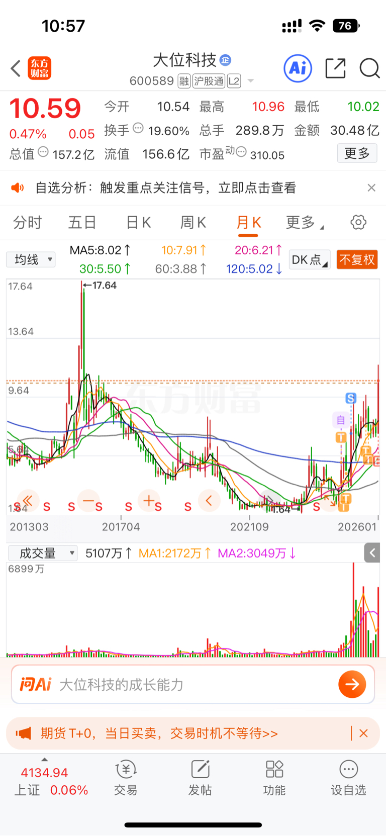$大位科技(SH600589)$ 大位15块钱随便到怕什么