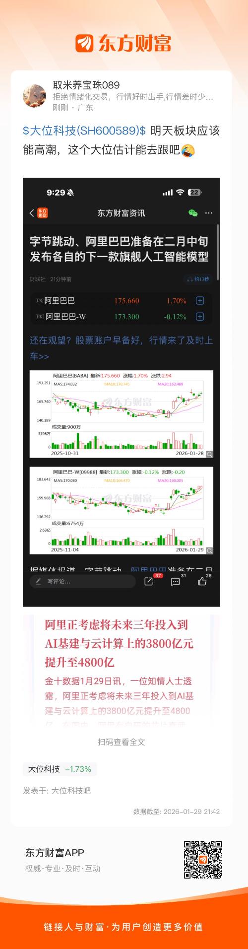 温馨提示: 1.根据《证券法》规定,禁止编造、传播虚假信息或者误导性信息,扰乱证券市场;2.用户在本社区发表的所有资料、言论等仅代表个人观点,与本网站立场无关,不对您构成任何投资建议。用户应基于自己的独立判断,自行决定证券投资并承担相应风险。《东方财富社区管理规定》