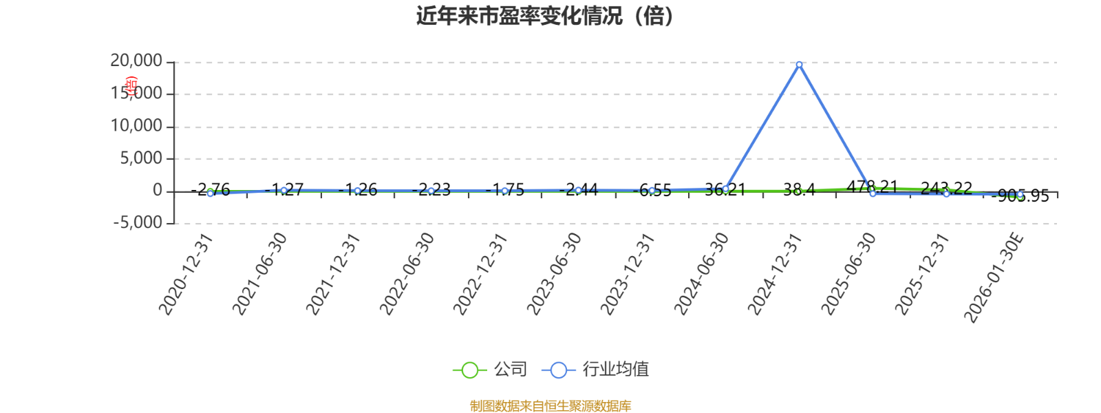市盈率、市净率为负时,不显示当期分位数,会导致折线图中断。