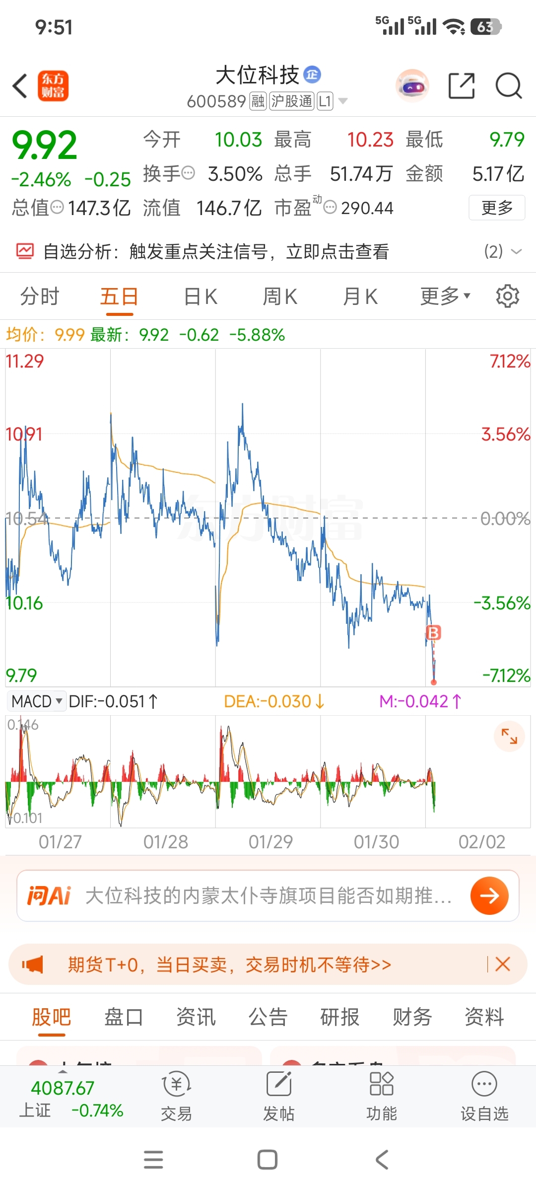 $大位科技(SH600589)$ 9.8建仓,看戏