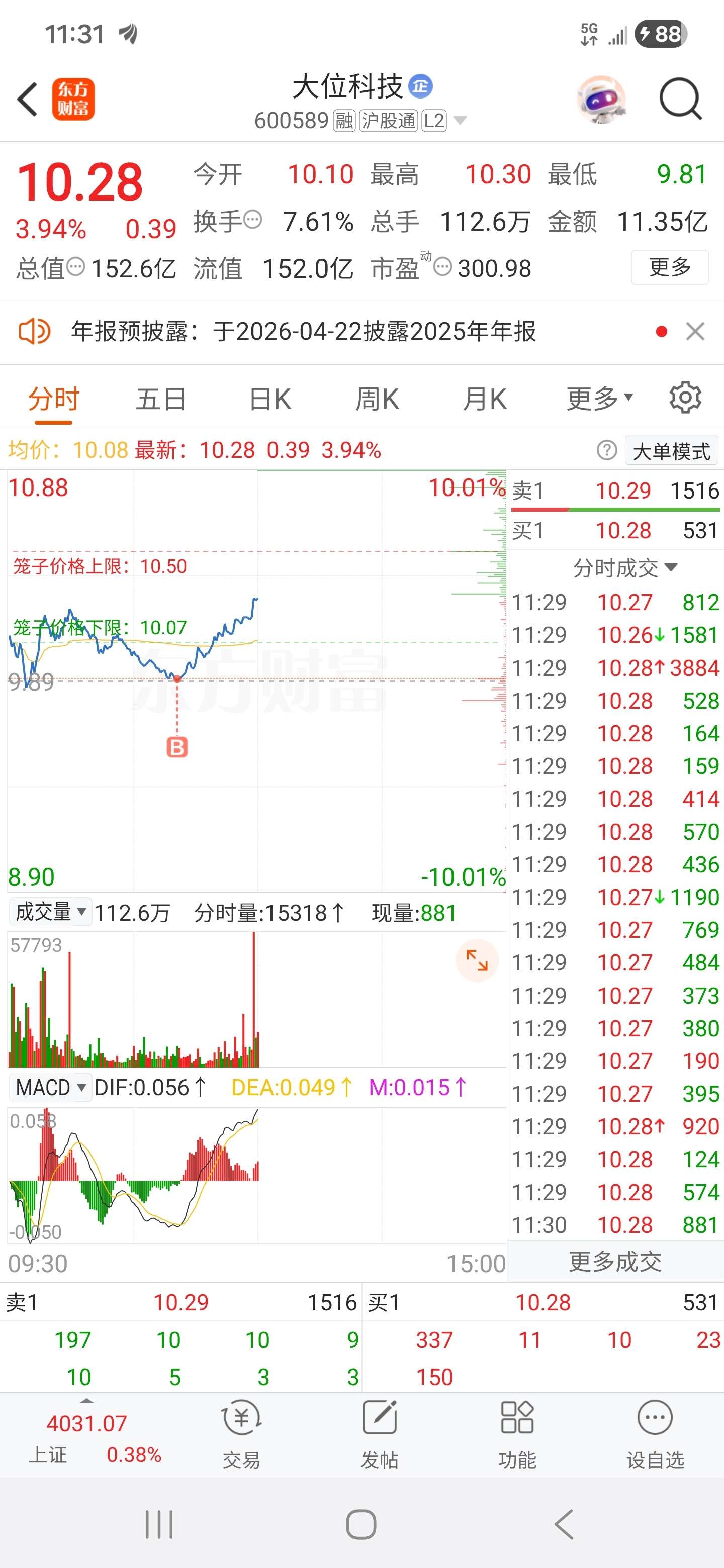 $大位科技(SH600589)$ 兄弟们,我来了