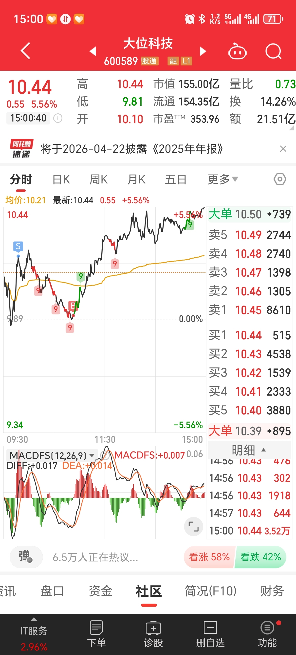 $大位科技(SH600589)$ 总算把成本从10.72慢慢的T下来了