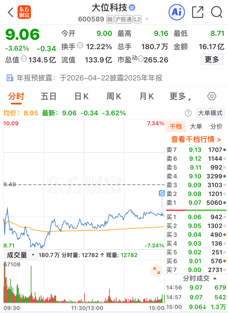 $大位科技(SH600589)$ 格局了一天,确认没机会了一键清仓,连续留了两个缺口,自己慢慢玩吧