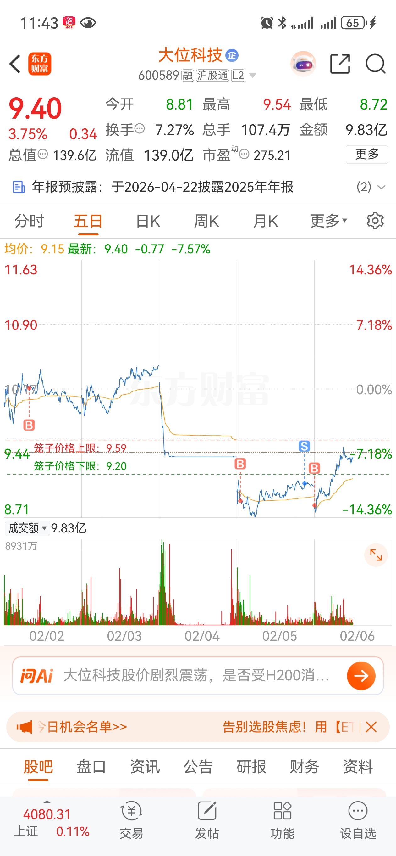 $大位科技(SH600589)$ 快回本了,回本就T出去。