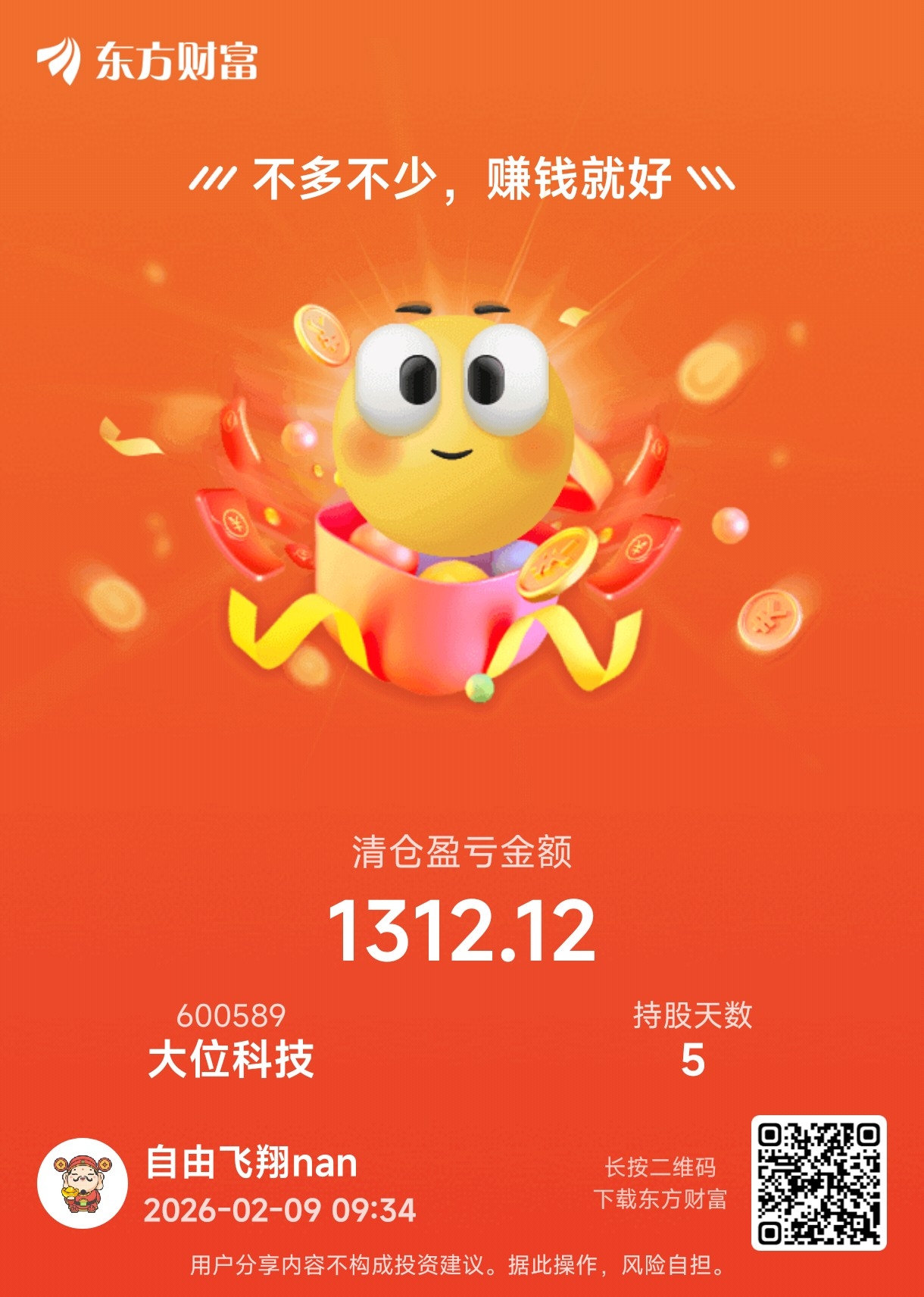 小赚1312卖了,不贪心