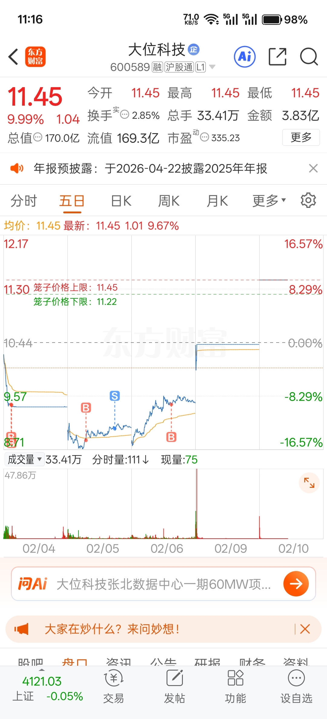 $大位科技(SH600589)$ #实盘记录# 也是吃上肉了