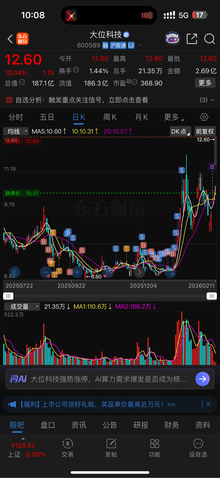 $大位科技(SH600589)$ 拿了很久卖完了这么厉害了