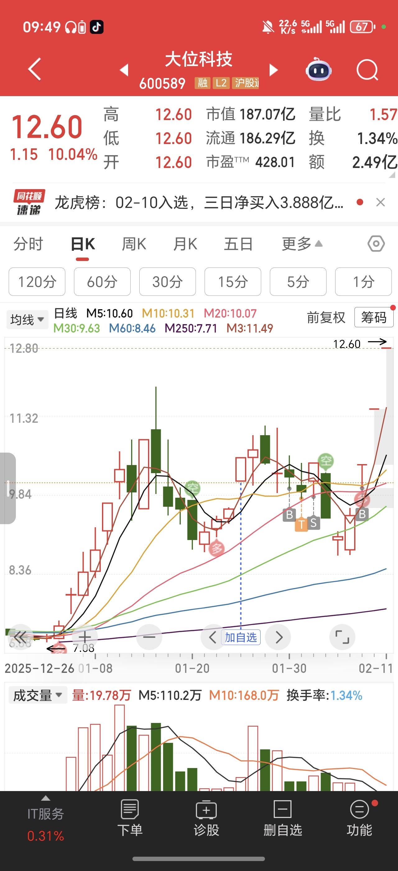 $大位科技(SH600589)$