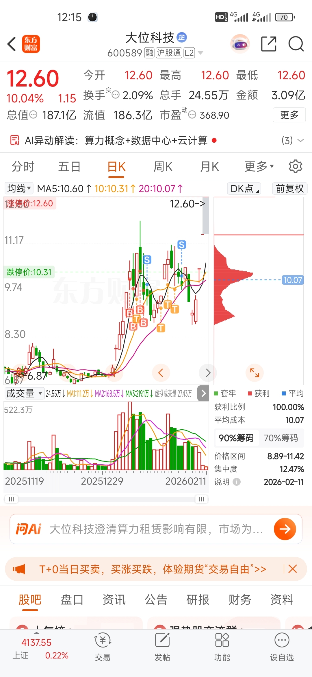 $大位科技(SH600589)$ 全仓拿了半个月,还是没守住,现在正式启动了,哎,挣不到这个钱,郁闷……