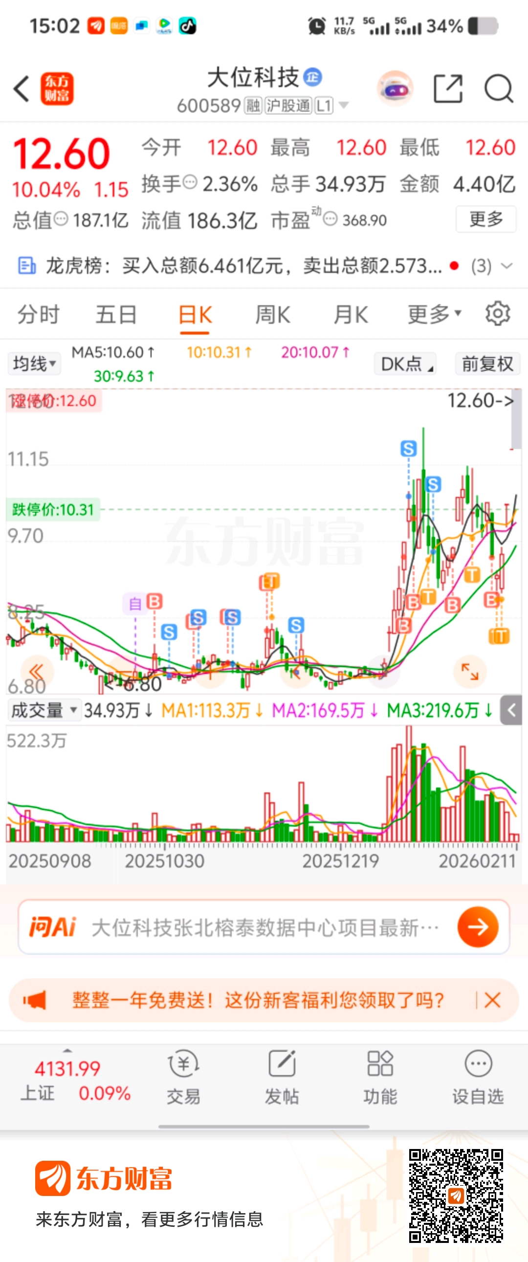 别问我为什么没有成本线因为两万股全卖了就留了一百结果拉了三个涨停#炒股日记# $大位科技(SH600589)$