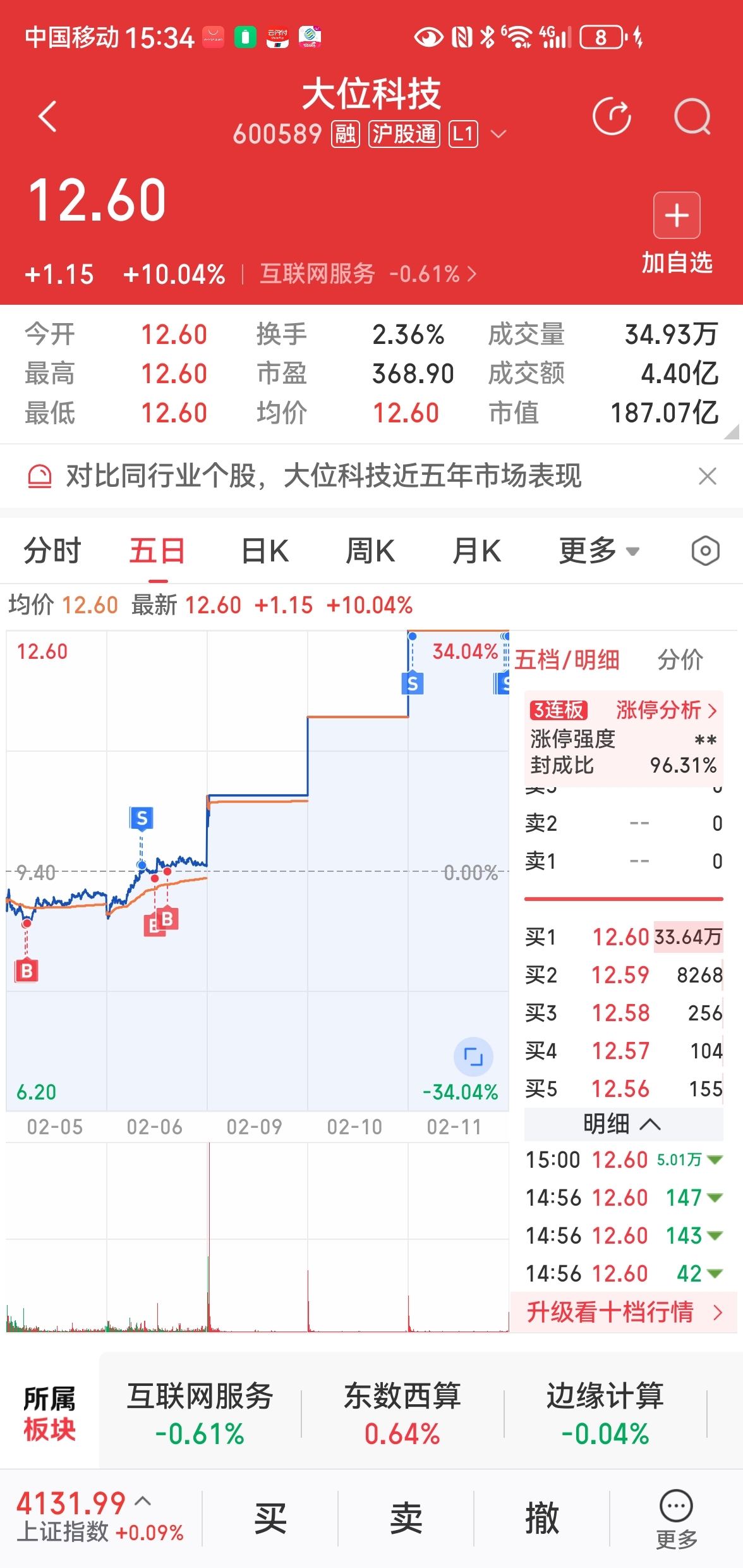 $大位科技(SH600589)$ 今天尾盘有点放量,是我心态坚持不住了,清仓了!