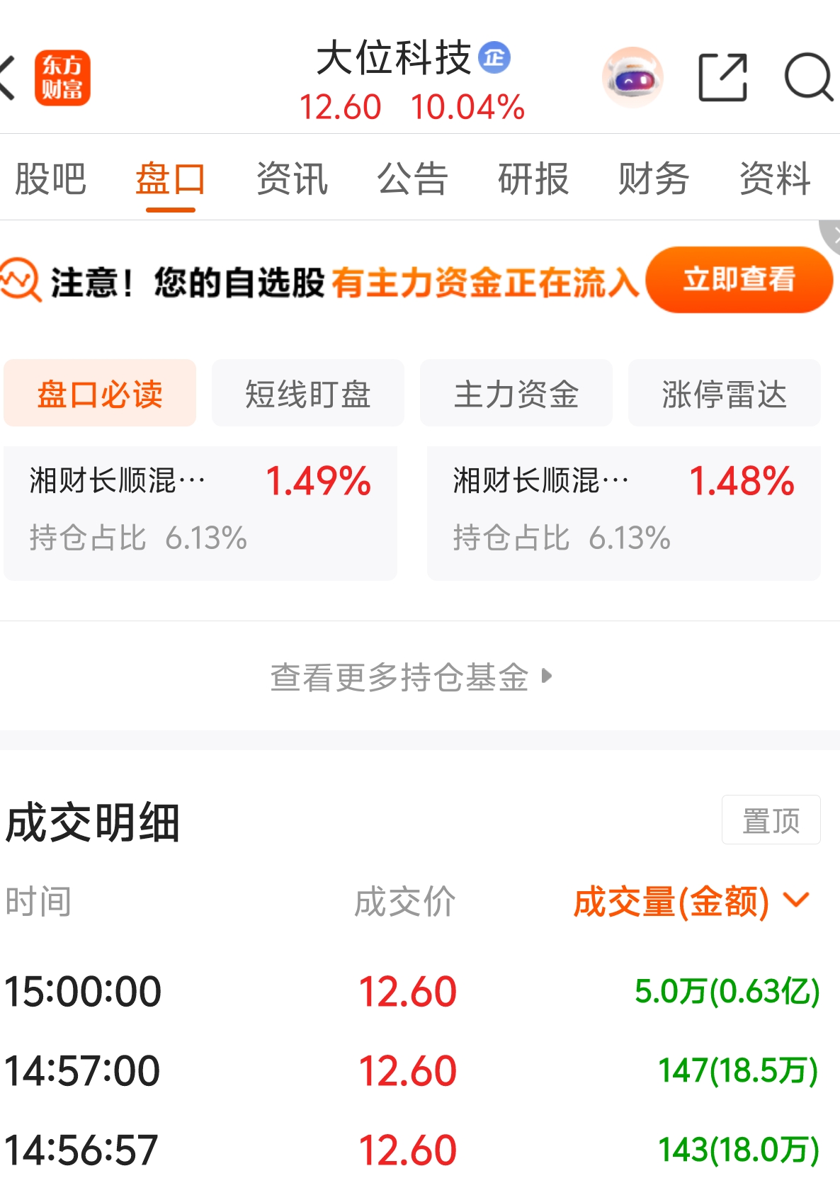 $大位科技(SH600589)$ 尾盘跑了6千万,有兄弟排进去的嘛