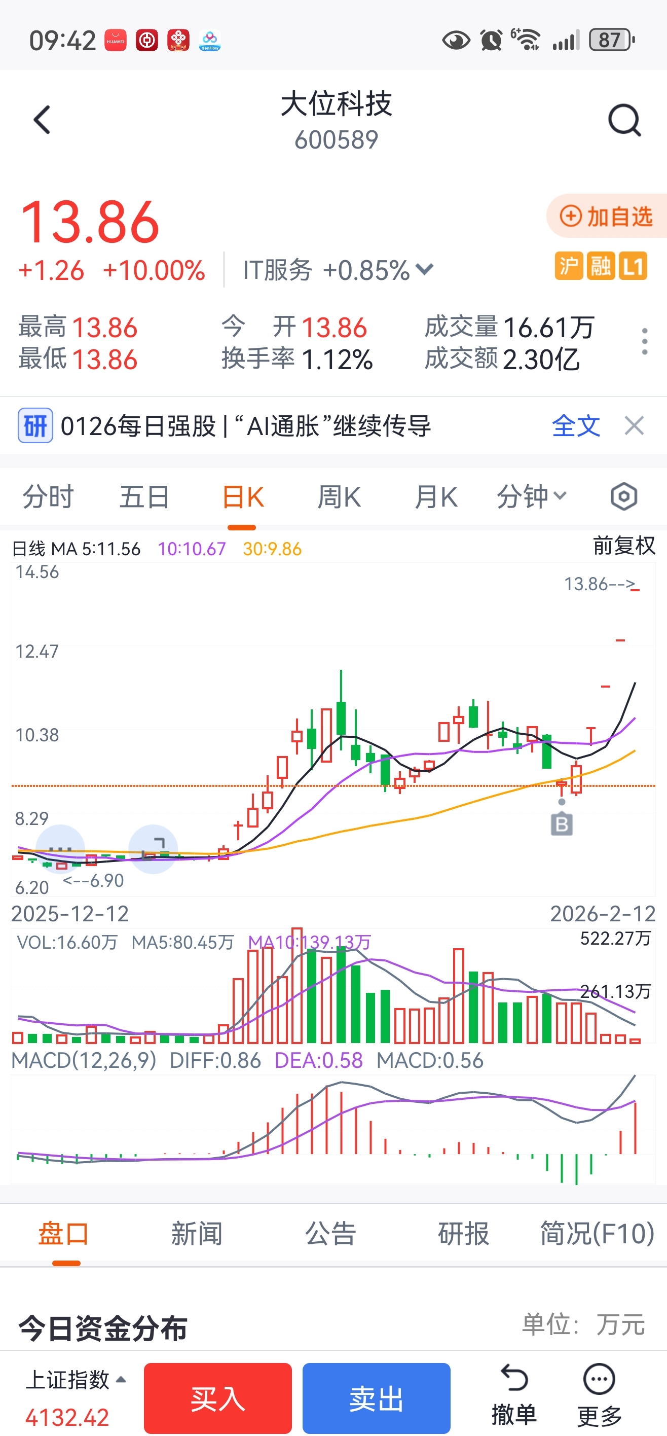 $大位科技(SH600589)$ 感谢发个过节费,爱你哟