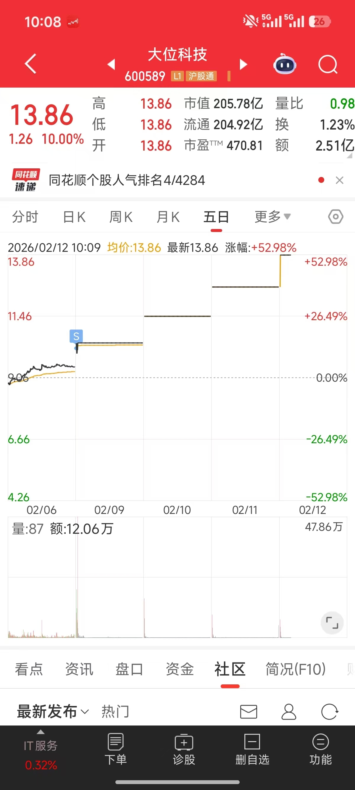 $大位科技(SH600589)$ 真卖飞了,呜呜呜