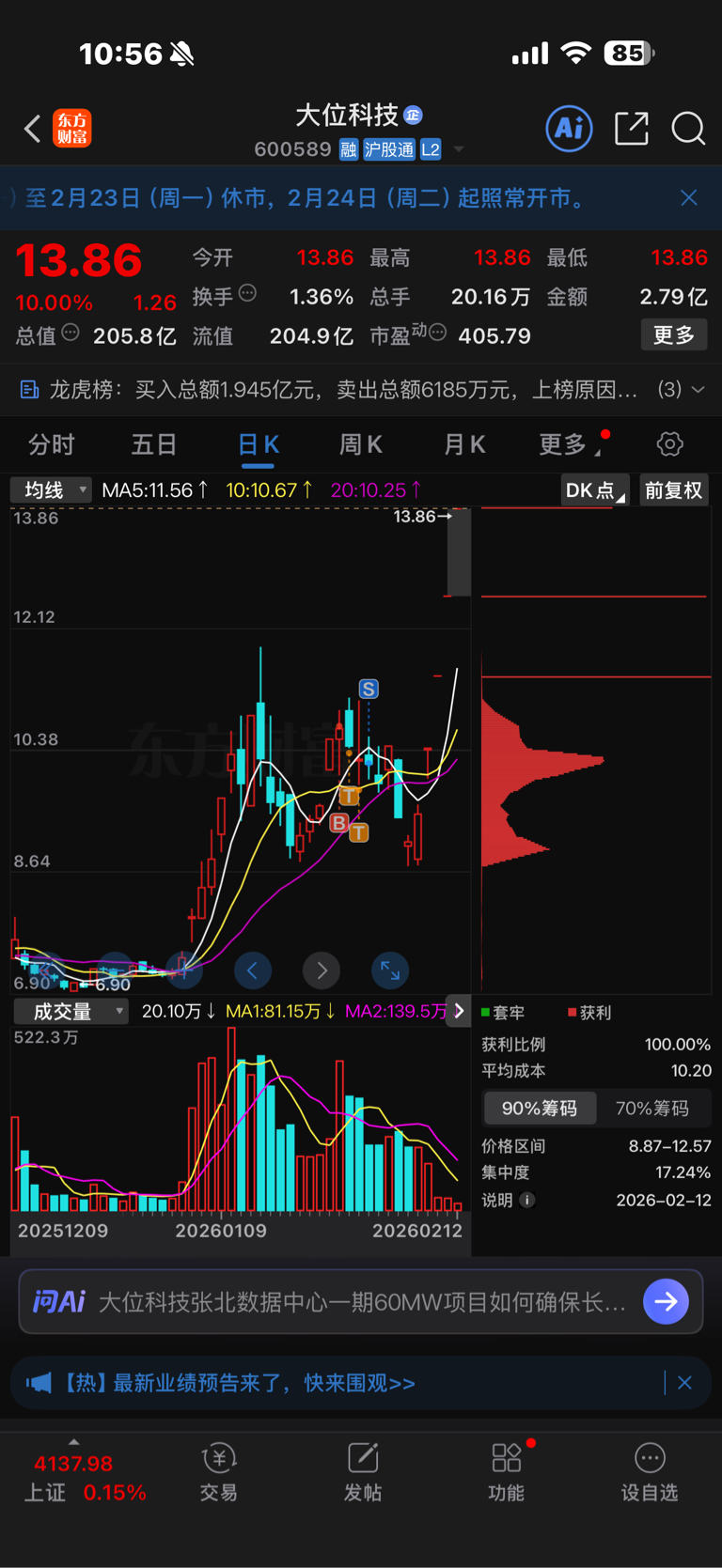 $大位科技(SH600589)$ 为什么不做耐心资本呢?一年卖飞的翻倍股无数,国晟底部4块钱买入,起飞前一天卖的,七倍....