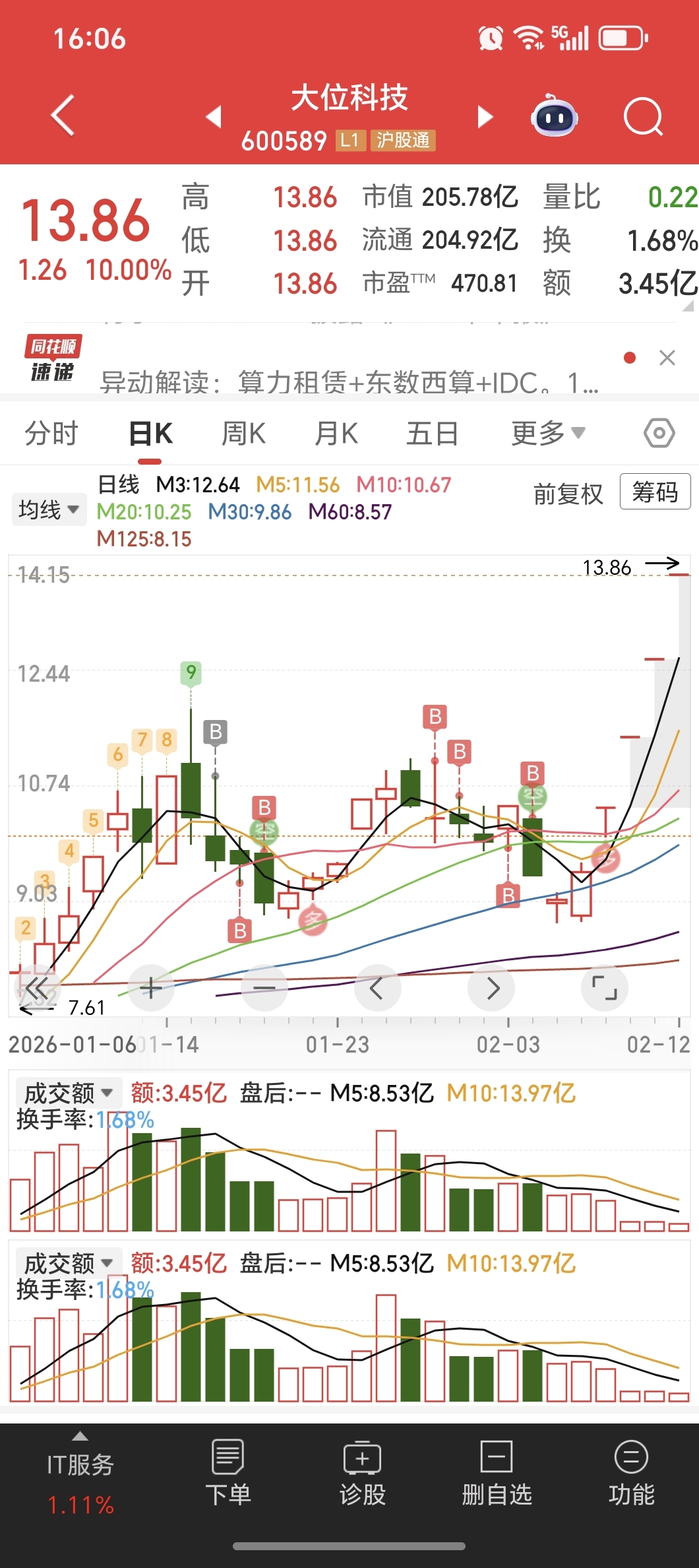 $大位科技(SH600589)$ $德艺文创(SZ300640)$ 说实话,前面两天我是很担心砸板滴,每天盯着,随时做好跑路准备,现在高度打开了,就轻松很多了,接下来可以说任何时候开板,再买入都会让你赚的盆满钵满,不是光靠口嗨,多去看看牛股,你就明白我在说什么。#收盘点评# #强势机会#