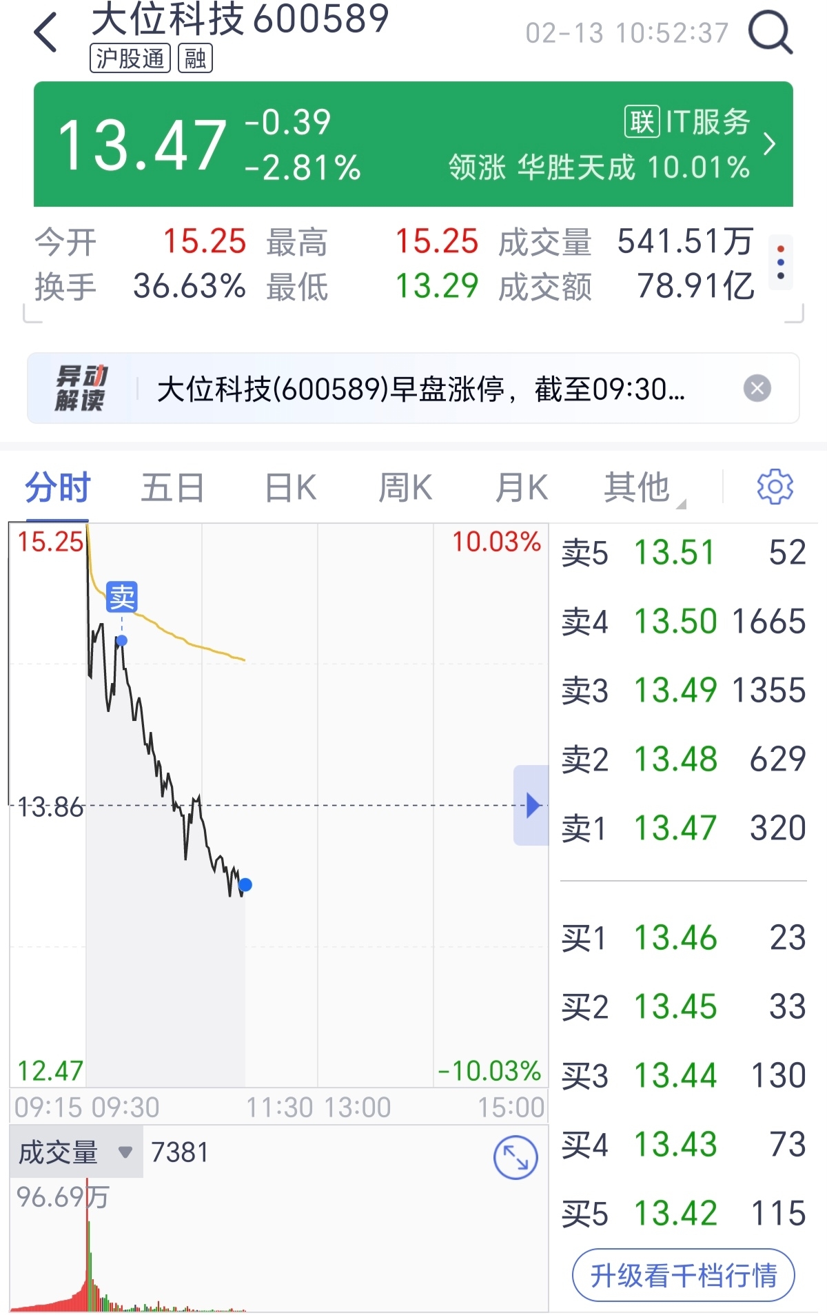 $大位科技(SH600589)$ 放量滞涨,受不了,先出,等尾盘再接回来!