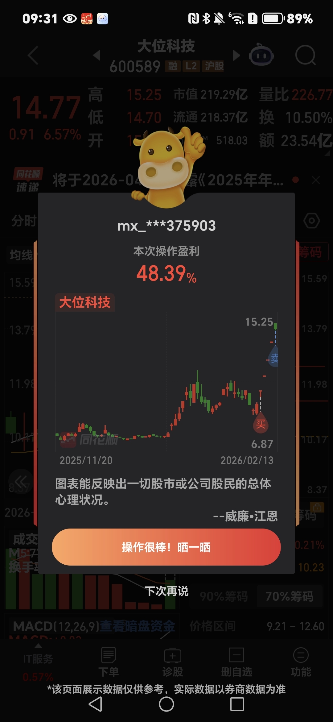 $大位科技(SH600589)$ 大位被掌阅卡位了!我板砸了!过年啰!我也哂一下