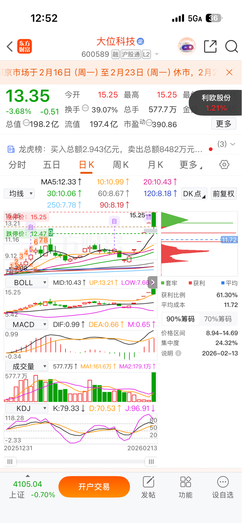 $大位科技(SH600589)$ 还是这个手法啊。等您稳了做你二波