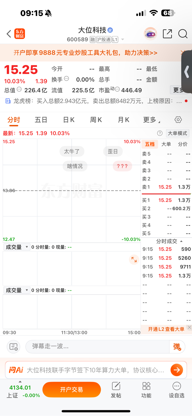$大位科技(SH600589)$ 从10块陪你洗盘到7块多,割肉了,没想到你15了