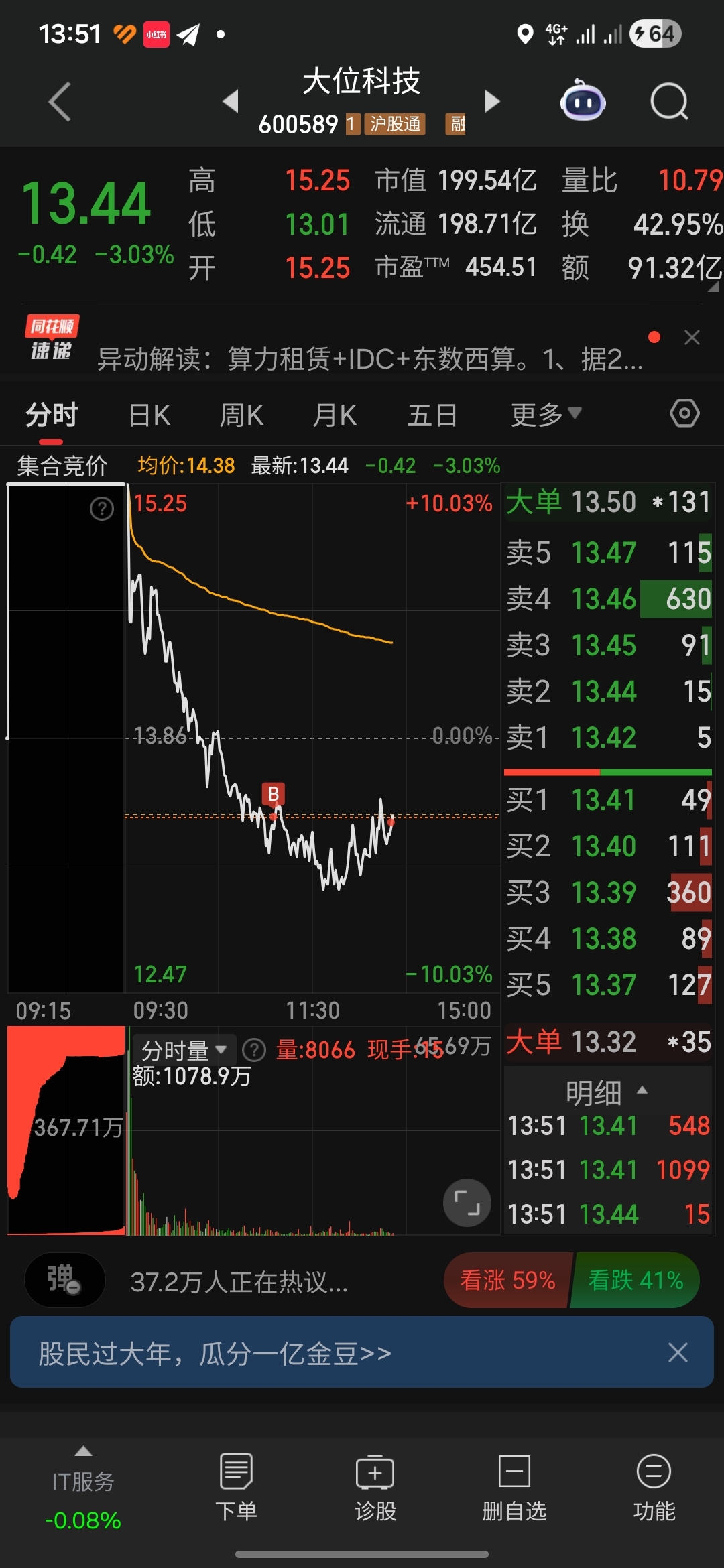$大位科技(SH600589)$ 试错仓位
