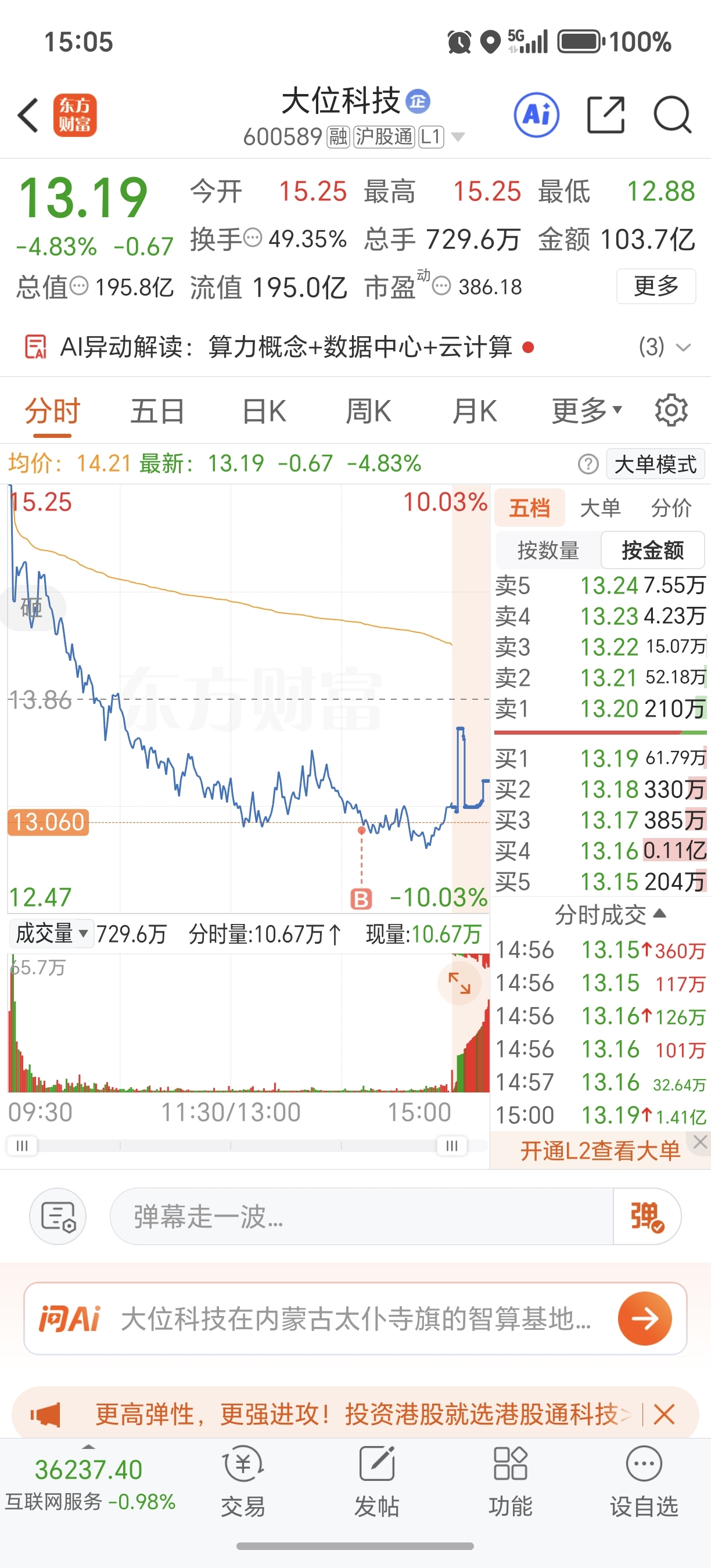 $大位科技(SH600589)$ 符合龙头反包模式,尾盘买入,已经成交!