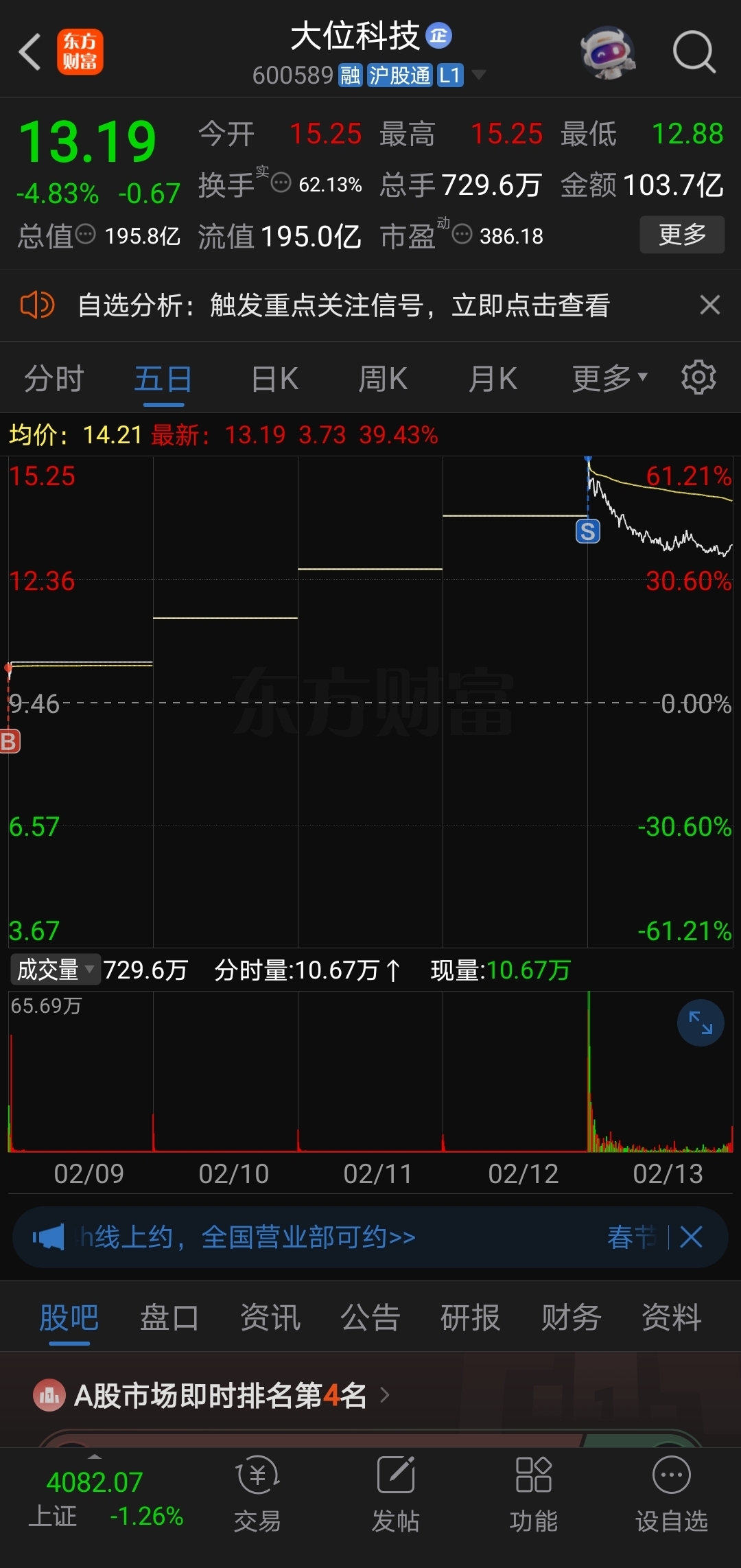 $大位科技(SH600589)$ 感谢主力,来年再战