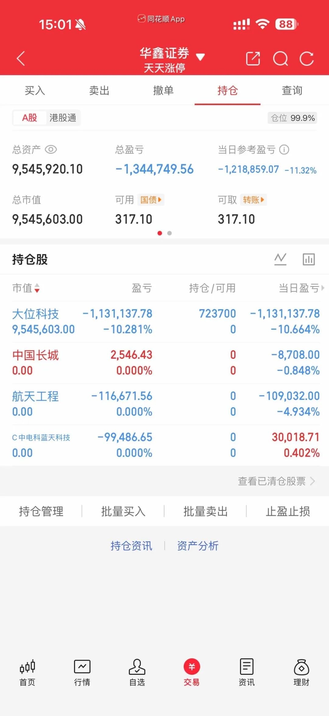 $大位科技(SH600589)$ 极端行情下谁都会亏