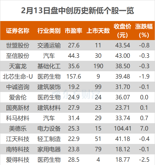 东方财富Choice数据显示,今日有12只个股盘中股价创历史新低。