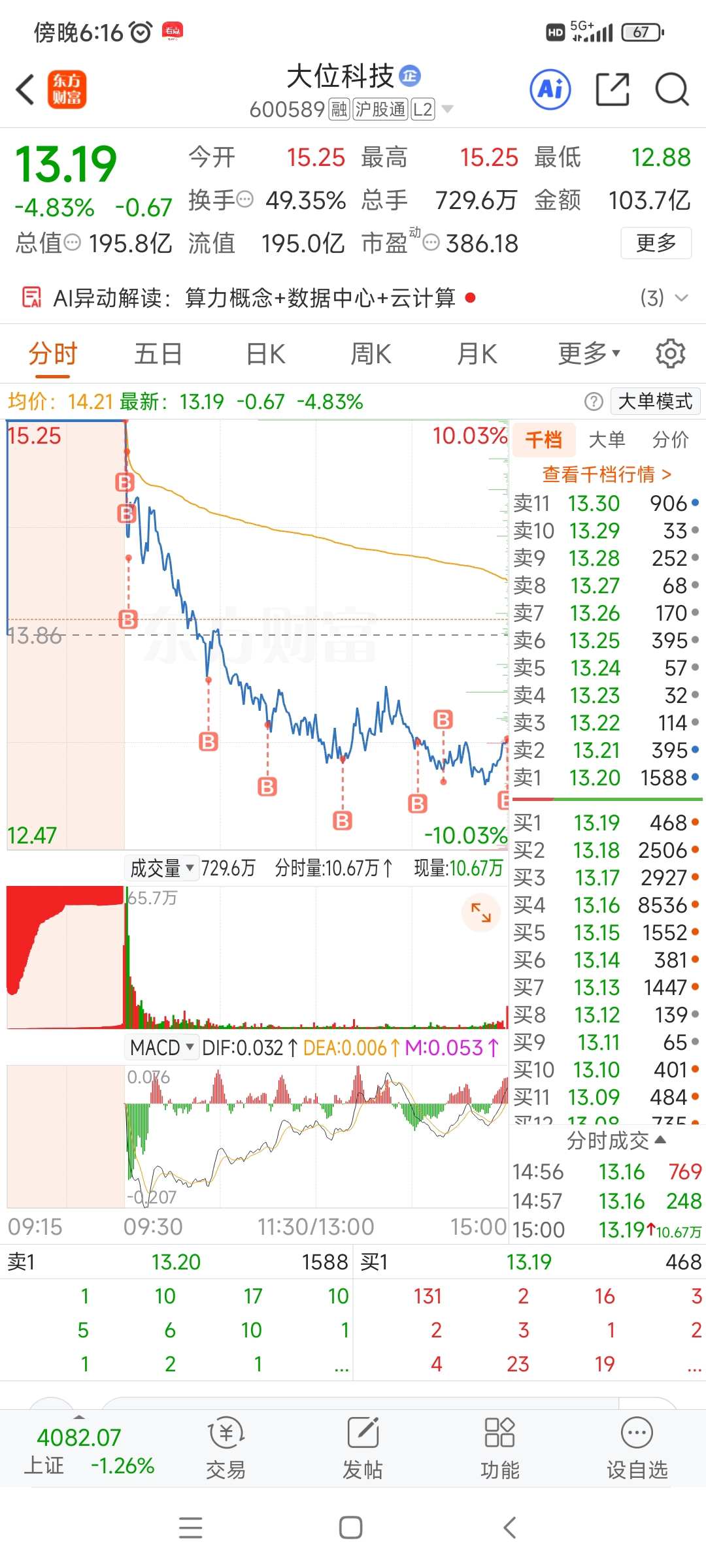 最后的多头,梭哈了,想来想去还是不明白为什么砸的这么深,就算断板也不应该这样的,逻辑又没有变,还是看好,相信自己。$大位科技(SH600589)$