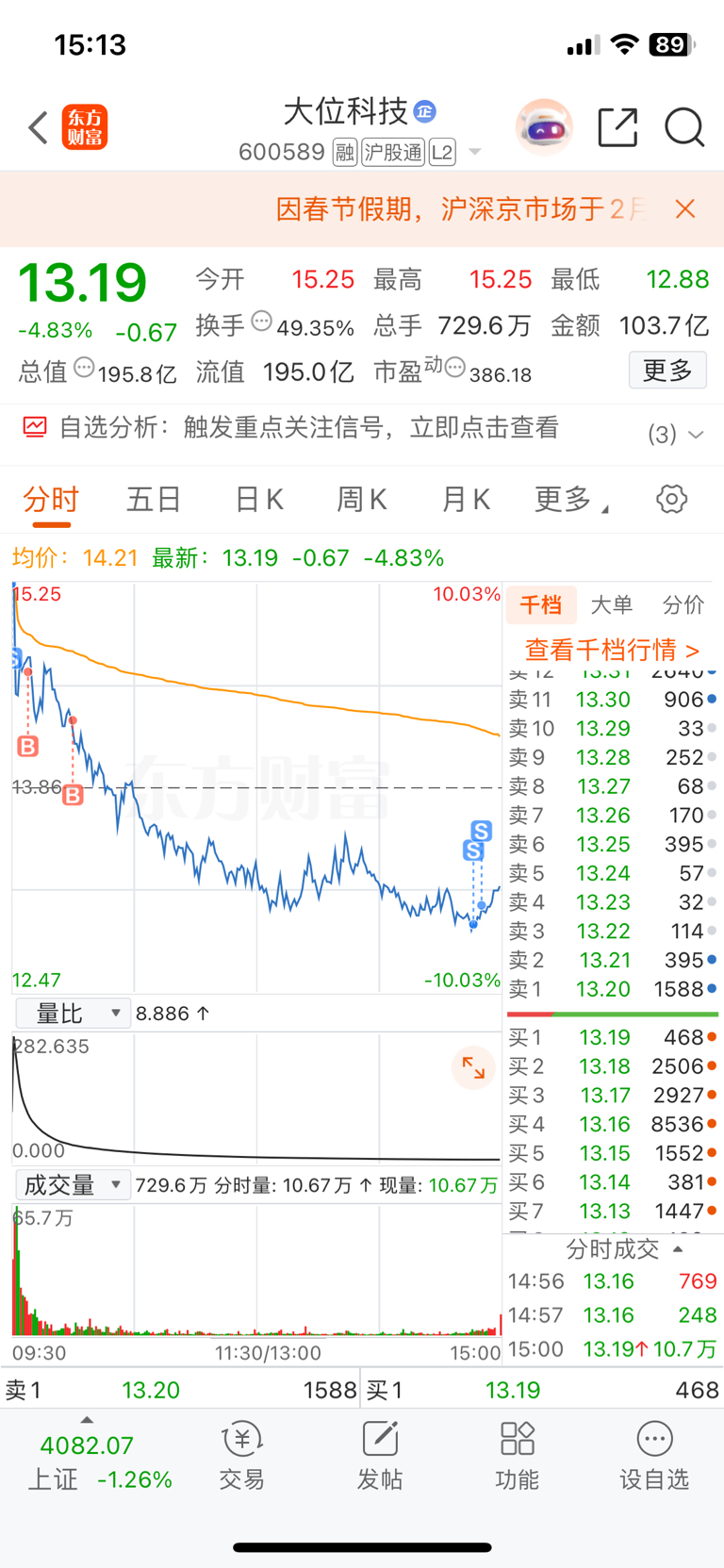 $大位科技(SH600589)$ 哎