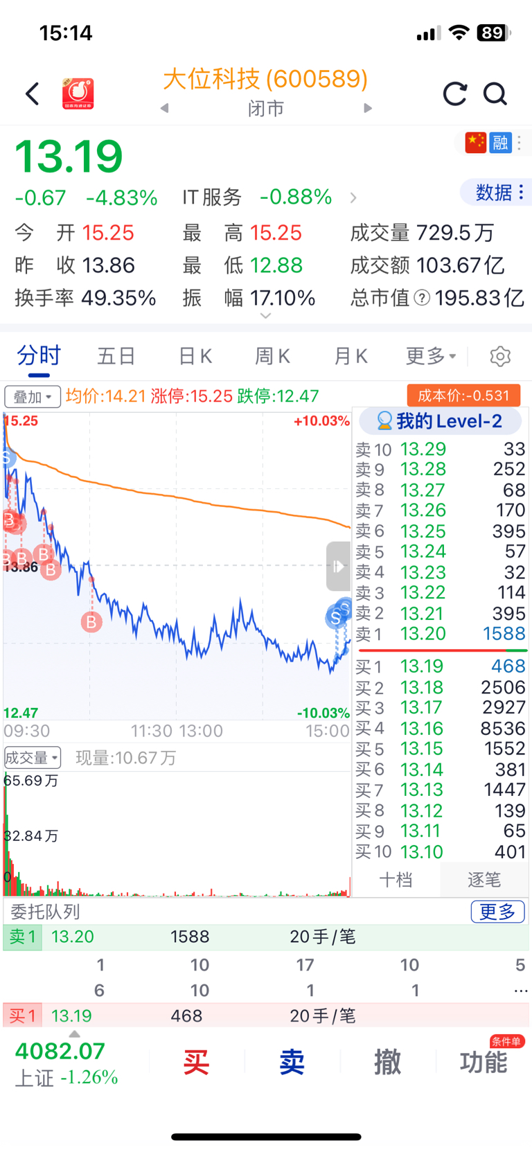 本来计划的好好的开板就该买的,鬼使神差的以为会反包,又加仓了好多笔,尾盘跌了那么多又鬼使神差的卖了大部分底仓