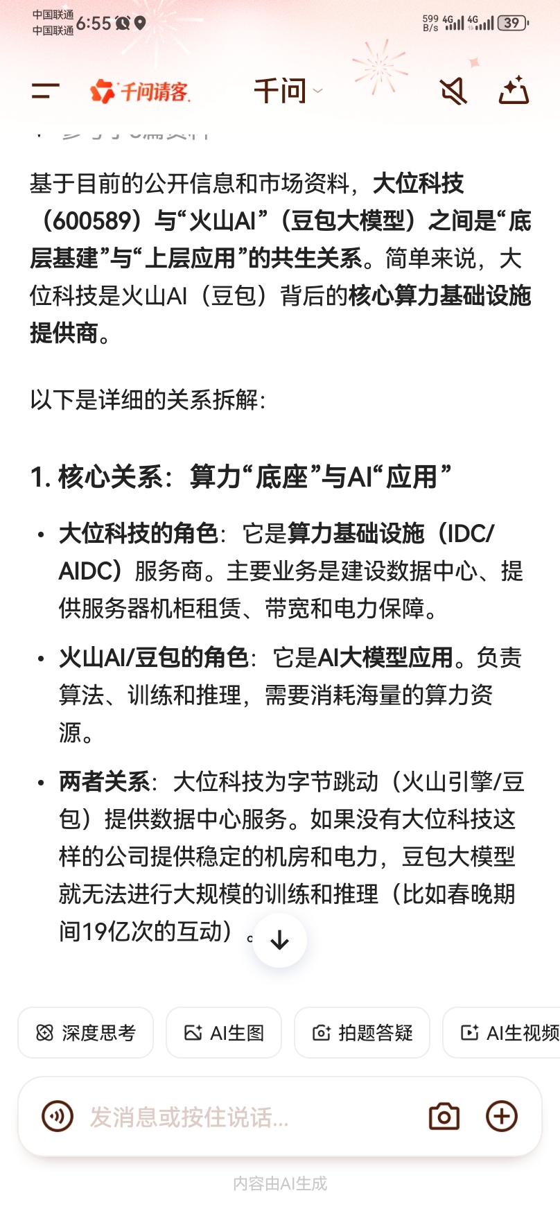 $大位科技结论:大位科技不生产AI模型,但它为火山AI(豆包)提供了赖以生存的数