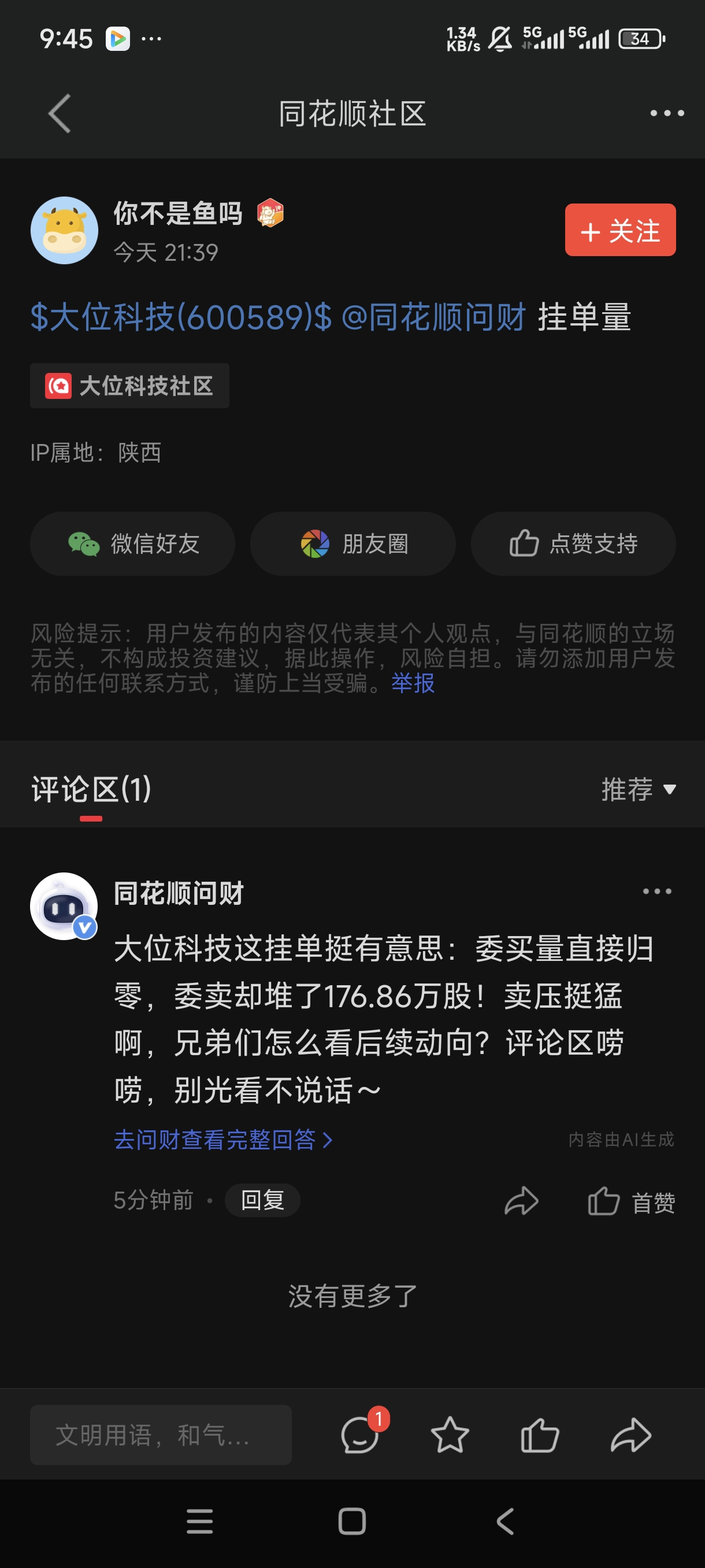 $大位科技(SH600589)$ 明天还是跌停啊?