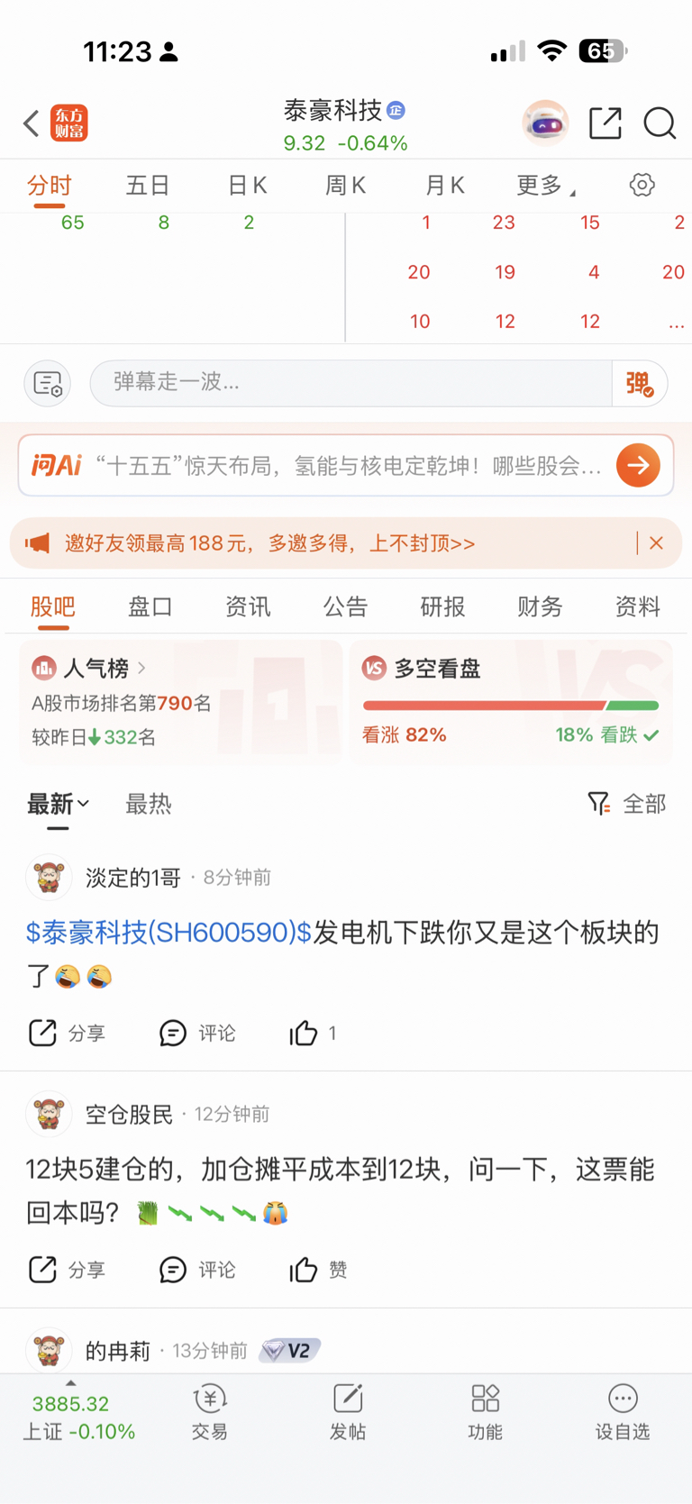 $泰豪科技(SH600590)$ 稍微反弹一点,这么多人看涨………